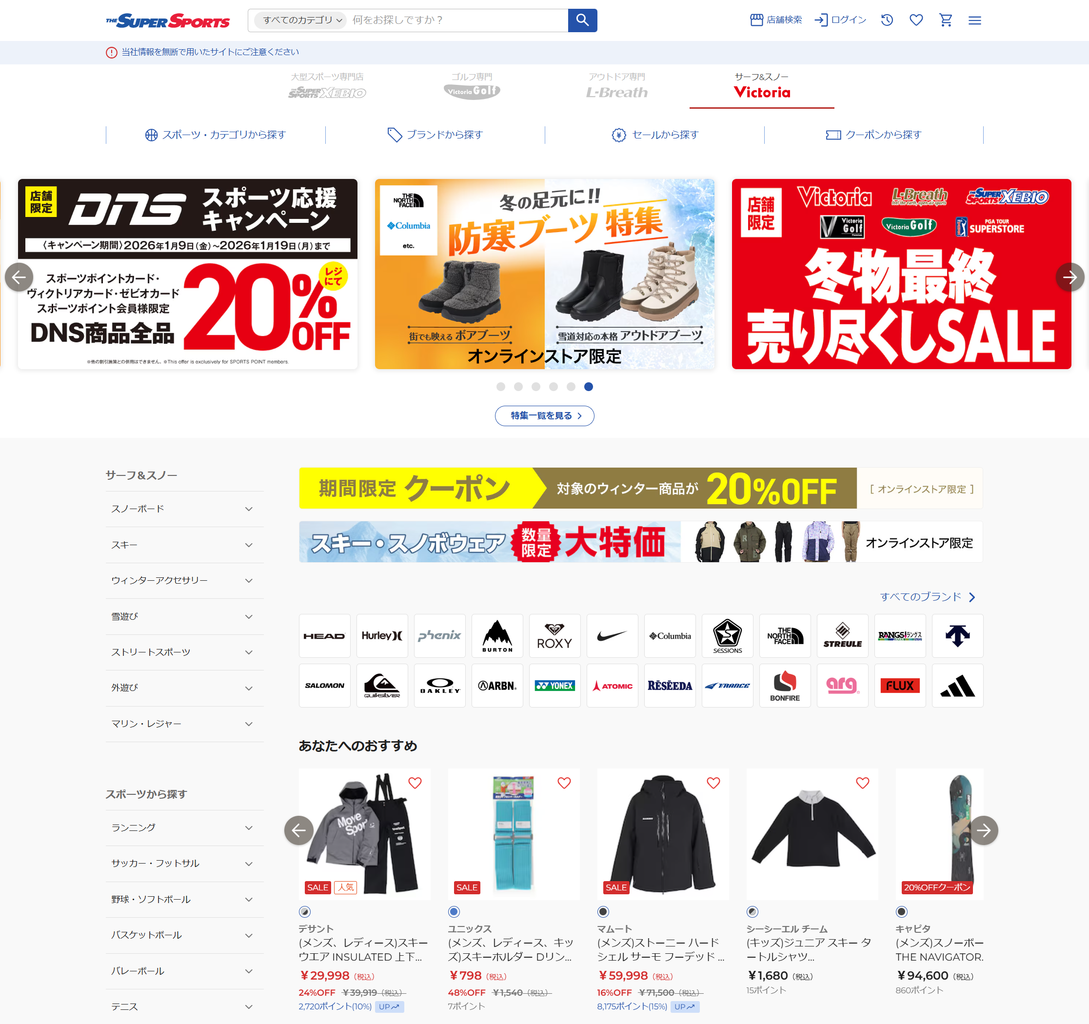 ウィンタースポーツ用品やサーフボード等のマリンスポーツ用品も通販で購入できます。