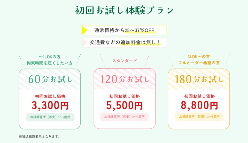 従来の家事代行は最低数時間からのプランが多く、